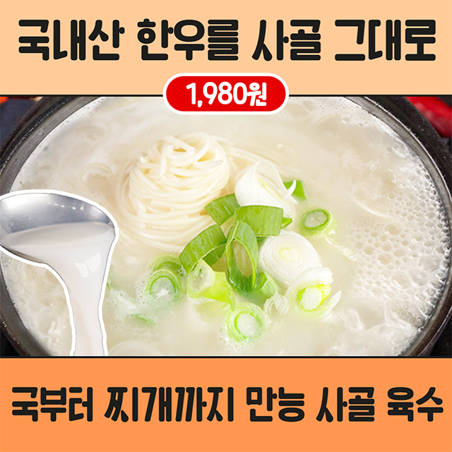 (원가무시/역마진) -택배비보다 싼 ★찐도매가★ 직접 고른 신선 한우뼈로 푹 우려낸 가마솥 한우사골곰탕 500g
