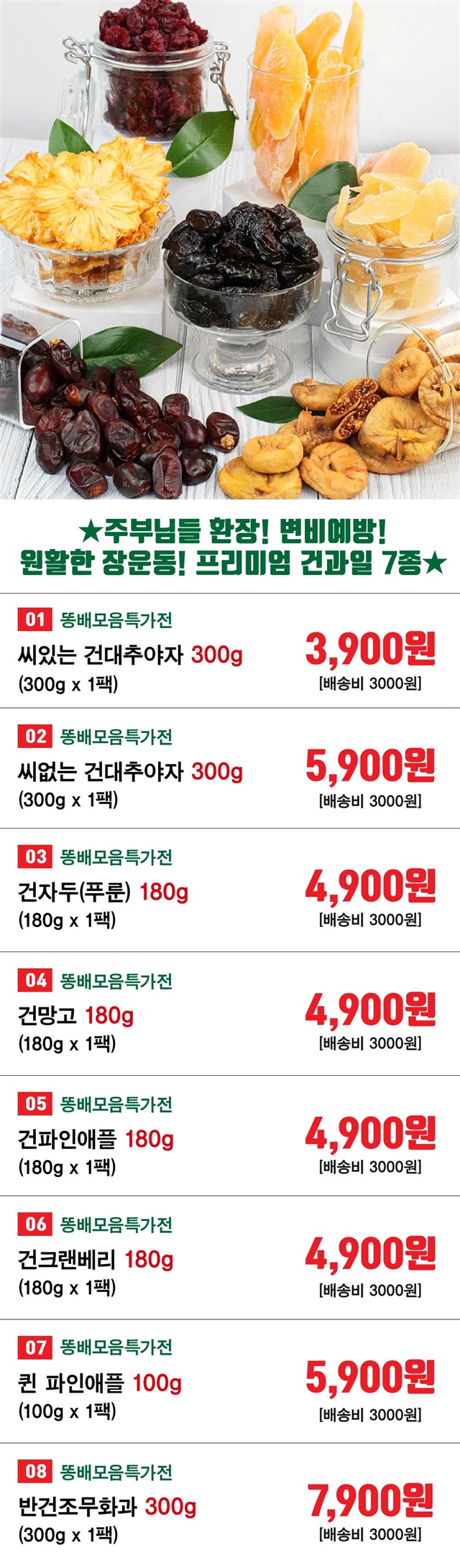 건대추야자/반건조무화과 300g, 퀸파인애플 100g, 건자두/건망고/건파인애플/건크랜베리