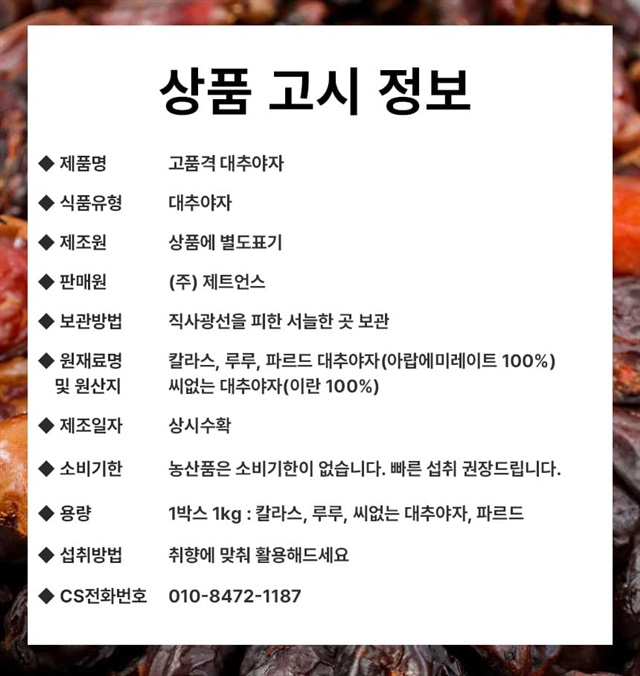 | 제조원 | KHATT DATES FACTORY / 아랍에미리트 |