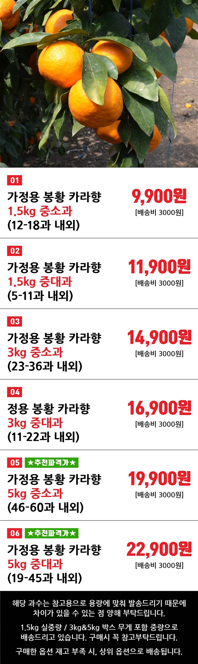 1.5kg: 박스무게 미포함 실중량 / 3kg, 5kg: 박스무게 포함